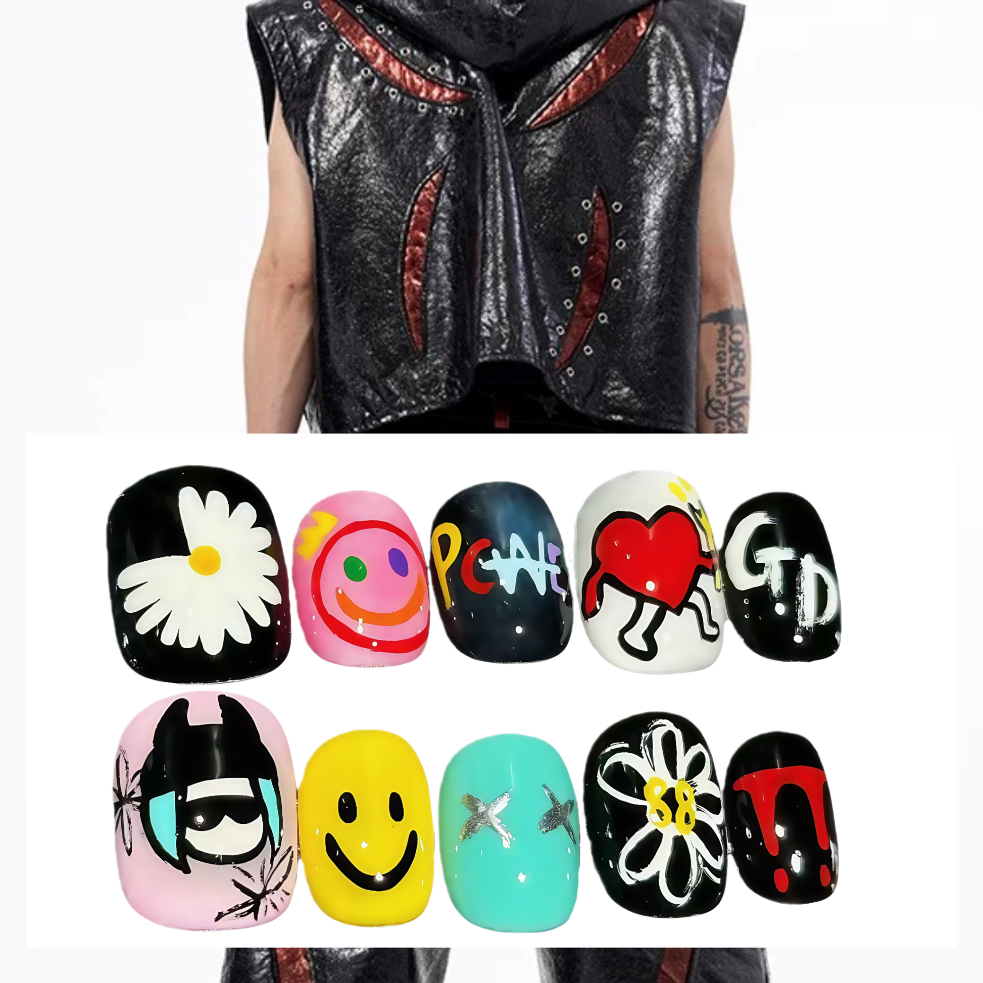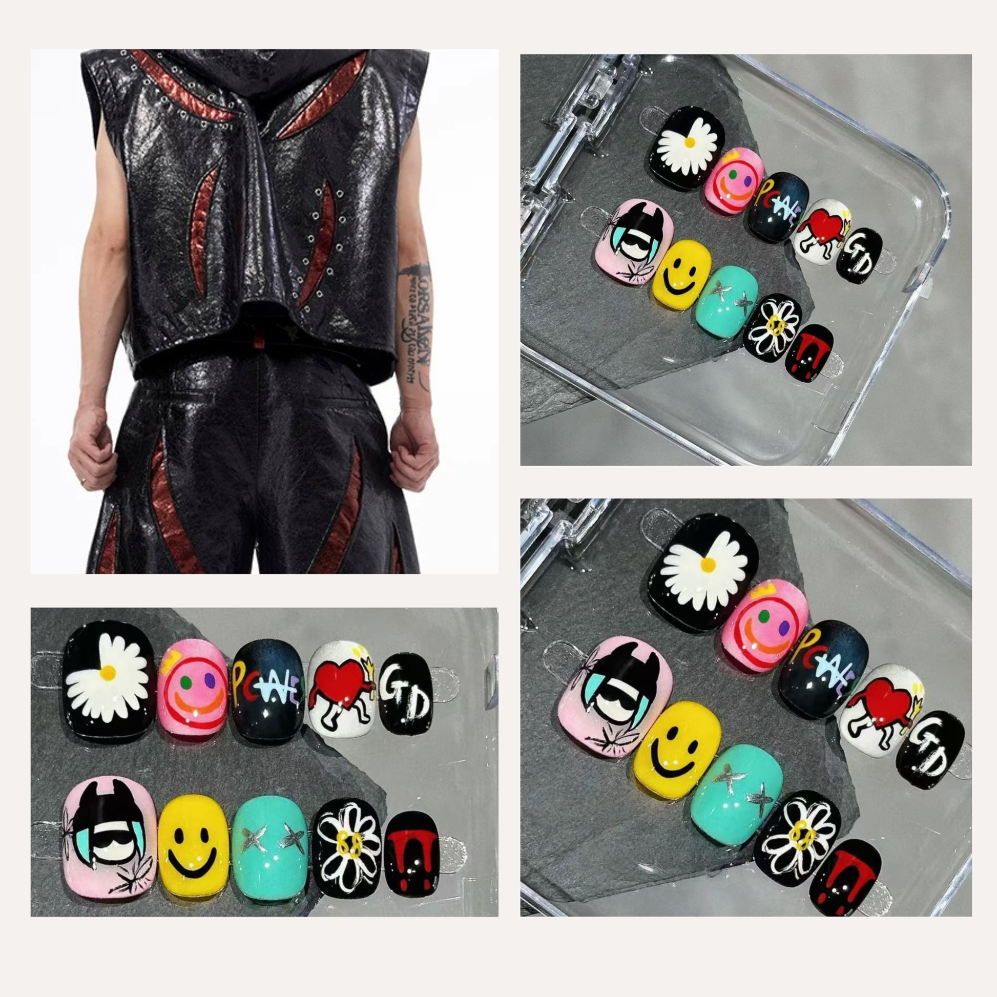 🖌️ Pure Hand-Painted Craft: Each daisy, smiley face, and custom symbol is meticulously hand-painted without additional inlays. This pure artistic approach ensures every nail is a unique expression of urban creativity and individuality.